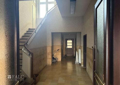 Über das Treppenhaus gelangen Sie im 1. OG über den Hausflur zum Eingang der Büroeinheit.
