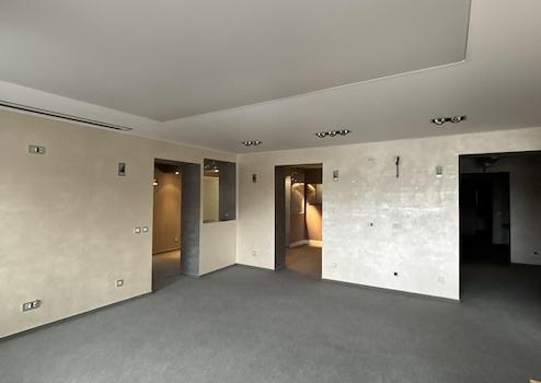 Zahlreiche Fenster sorgen dafür, dass die Fläche hell und lichtdurchflutet ist und viel Spielraum für individuelle Aufteilungen, Arbeitsinseln oder Präsentationsflächen bittet. Mehrere abgetrennte Räume sowie Sanitärbereiche und ein Bistrobereich (kann nach Wunsch demontiert werden) runden das Angebot ab.