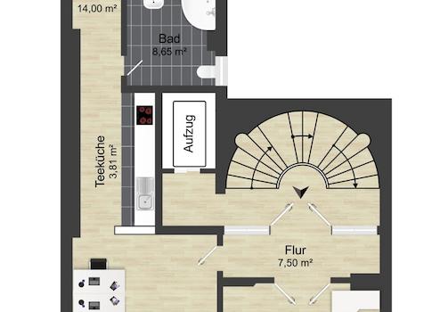 Die Gewerbeeinheit im 2.Obergeschoss ist wie folgt aufgeteilt: