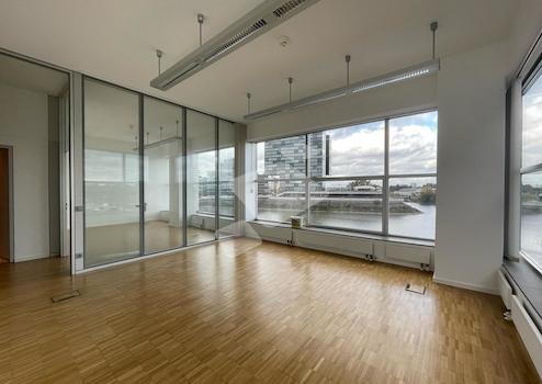 Die modernen und eleganten Büroflächen befinden sich in erster Rheinlage und bieten einen fantastischen Blick auf den beliebten Medienhafen, den Rhein und die Düsseldorfer Altstadt. Sehr gute Erreichbarkeit und sehr gute ÖPNV-Anbindung. Im Düsseldorfer Medienhafen haben die Stararchitetkten David Chipperfield, Ingenhoven Overdiek & Partner und Stephan Holl eine der modernsten, außergewöhlichsten Interpretation im Bereich Loftbuilding erschaffen.