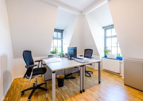 Zur Anmietung steht eine exklusive Bürofläche von ca. 210 m² im Dachgeschoss, die ein inspirierendes Arbeitsumfeld bietet.
