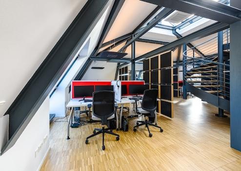 Ergänzt wird das Angebot durch eine hochwertige Akustikdecke, die eine ruhige, konzentrierte und produktive Arbeitsatmosphäre gewährleistet.