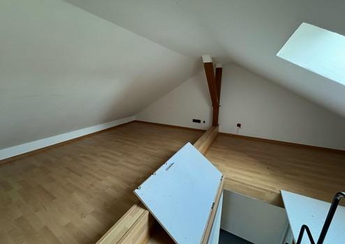 Eine voll ausgestattete Küche lädt zu entspannten Pausen ein, während das moderne Badezimmer mit Badewanne und Dusche den Alltag erleichtert. Der großzügige Giebel, bequem über eine interne Treppe erreichbar, bietet zusätzlichen Stauraum.