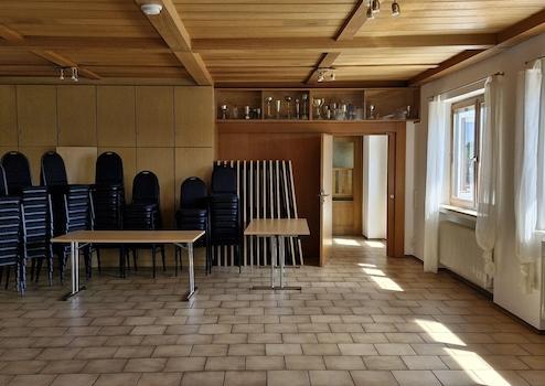 Saal mit ca. 70 m², Platz für ca. 60 Personen, ideal für Versammlungen, Feiern, Veranstaltungen