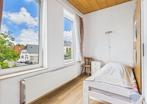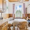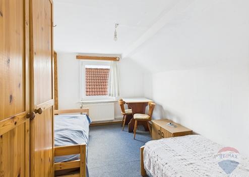 Im Obergeschoss befinden sich zwei Wohnungen mit ca. 97 m² und 49 m² Wohnfläche. Das Dachgeschoss bietet rund 55 m² Personalräume mit vier Zimmern und Bad. Eine weitere ca. 37 m² große Wohnung liegt im zweigeschossigen Flachdachanbau.