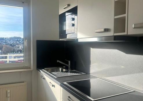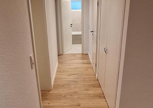 Kernsanierte Fläche: Elektrik komplett erneuert, neues Bad mit Dusche/WC, auf Wunsch Gäste WC, Küche mit neuer Einbauküchenzeile (Platz in Küche für Sitzgelegenheit), neue Bodenbeläge, neue Türen und Türzargen, zwei Balkone, hinterer Balkon mit Skylineblick, kleine Lagerfläche im Keller, auf Wunsch bis zu 4 KFZ Stellplätze