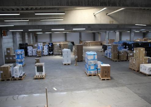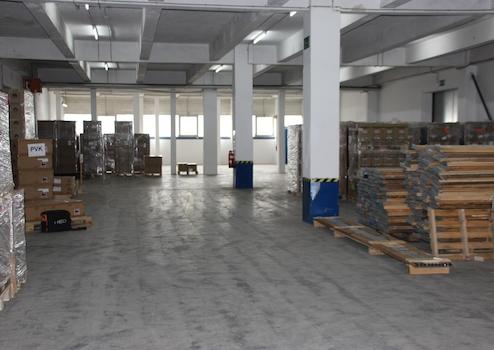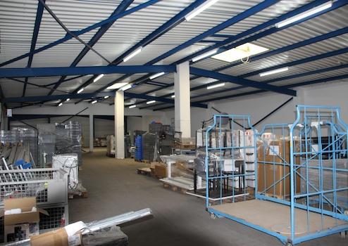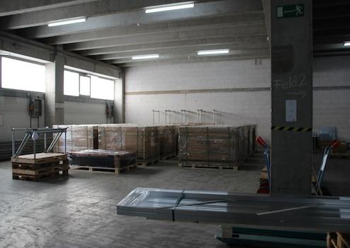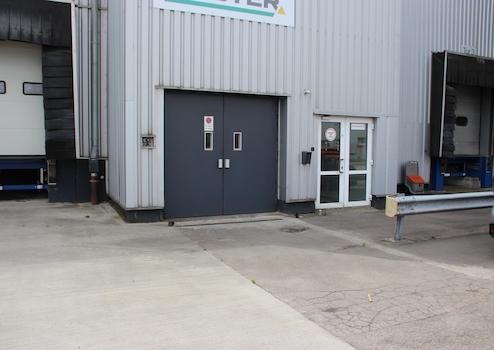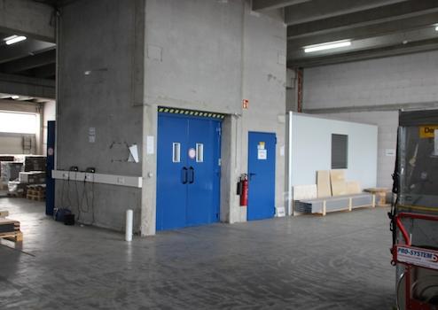 3 elektr. Rolltore und Überfahrbühnen. Tore in Rampenhöhe. Außen- und Innenaufzüge vorhanden. Bürocontainer kann voraussichtlich übernommen werden.