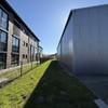 Um die Halle herum befindet sich eine angelegte Grünfläche mit Beeten im Einfahrtsbereich des Grundstücks und den vorhandenen Parkplätzen. Das Grundstück ist im Einfahrtbereich durch ein zweiflügeliges Einfahrtstor verschlossen.