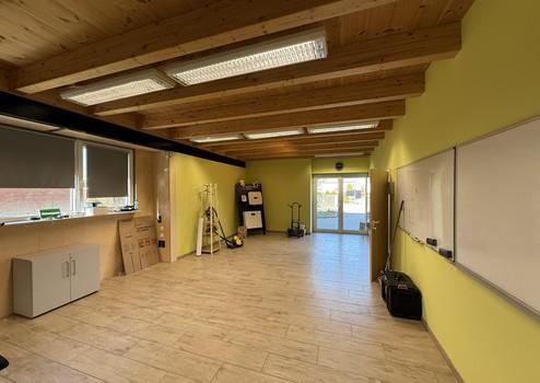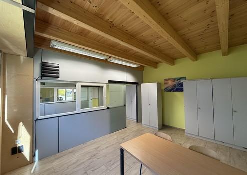 Die Bürofläche verteilt sich auf etwa 80 m² und ist in drei Räume unterteilt. Der komplette Bürobereich und der Kundenempfangsbereich werden durch eine Luft – Wärmepumpe beheizt.