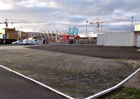 Vermiete ab sofort attraktives, asphaltiertes Gewerbegrundstück in bester Lage, 1400 m² teilbar in 800 m² + 600 m² für – Verkaufsfläche – Autohandel – Stellplatz – an einem stark befahrenen Eckgrundstück an der Bundesstrasse B26 Darmstädterstrasse / Industriestrasse 33 in Stockstadt / Main, vor den Toren Aschaffenburgs.