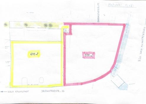 Gesamtfläche: 1400 m² (Gewerbegrundstücksfläche) teilbar in 800 m² + 600 m²