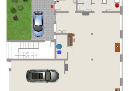Die beheizte Hallenfläche von 188,21 m² ist über ein elektrisches Sektionaltor (B x H) 4000 × 3500 m befahrbar.