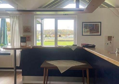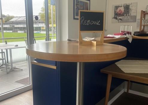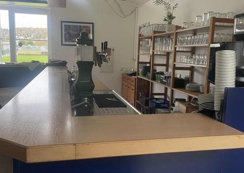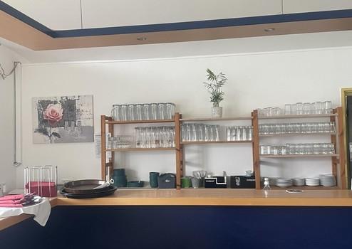 einen großzügigen, hellen Gastraum mit Thekenbereich,