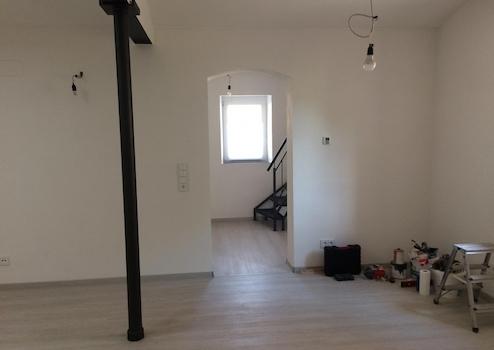 Die abgeschlossene Wohnung ist Teil eines alten Steinhauses aus 1886, es wurde in 2019/2020 renoviert und energetisch saniert (Wärmedämmung der Wände, Decken und Böden). Fenster, Türen, Fußboden, Treppe, Badobjekte, Leitungen und Installation wurden erneuert. Erstbezug war in 2019, die Räume werden in renoviertem Zustand übergeben.