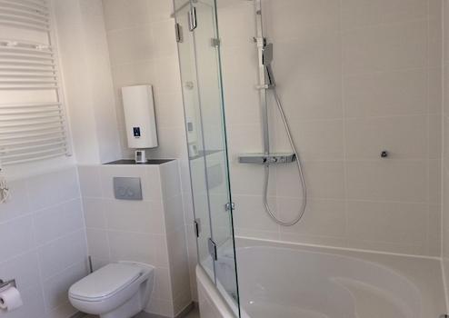 Die Warmwasserversorgung in Bad und Küche erfolgt elektrisch über Geräte zur Warmwasseraufbereitung.