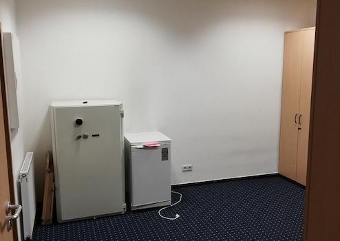 Aktuell entspricht die Einrichtung und der Grundriss einem klassischen Büro. Die hochwertigen und noch enthaltenen Schränke und Tische, der Serverschrank und auch der Tresor stehen Ihnen kostenfrei zur Verfügung. Auf Wunsch kann die vorhandene Ausstattung entfernt werden.