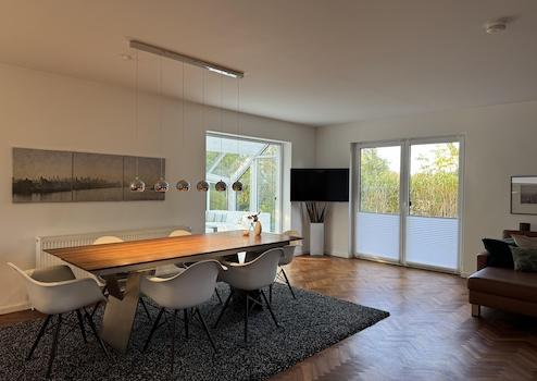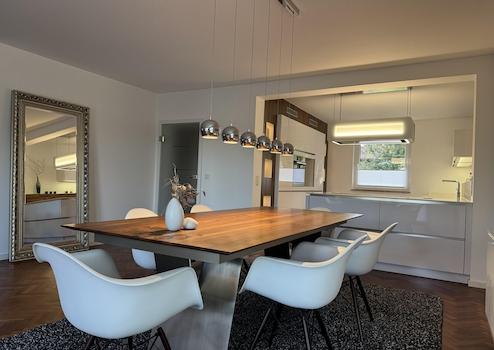 - Echtholzparkett im Wohn-, Ess- und Küchenbereich