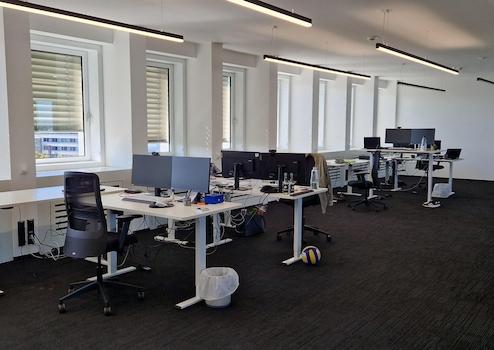 Die modern ausgestatteten Büroflächen liegen in der sechsten Etage eines Ende 2023 renovierten Bürogebäudes.