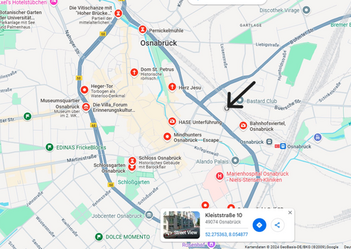 Viele Fußgänger, Bahnhofsnähe, Nah zur Innenstadt , ruhige Seitenstraße mit guten Parkmöglichkeiten. Einfach zu erreichen.