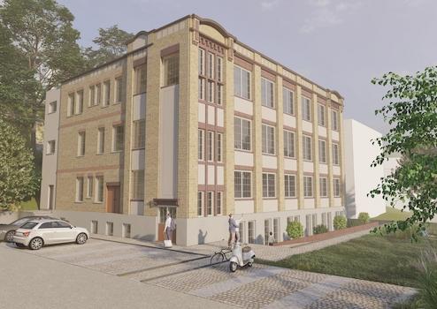 Das dreigeschossige Bürogebäude ist stark sanierungsbedürftig und gilt als abbruchreif. Eine neue Bebauung auf dieser Fläche eröffnet zusätzlichen Gestaltungsspielraum.