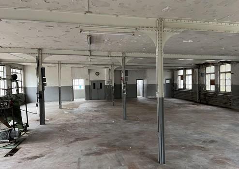 Der Zugang zu beiden Bestandsgebäuden erfolgt über eine Brücke. Sämtliche Gebäude wurden bereits vollständig ausgeräumt und bieten somit eine leere Grundlage für zukünftige Planungen.