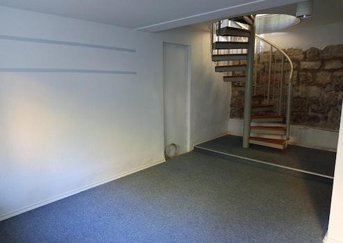 Kleine doppelgeschossige Gewerbeeinheit im Nebengebäude eines Wohngrundstücks in Schillerplatznähe. Separater Zugang im Erdgeschoss mit Bürofläche und Teeküche, Wendeltreppe ins Souterrain mit weiterer Nutzfläche und einem Duschbad. Derzeitige Ausstattung mit Teppichboden und Rauhfasertapete.