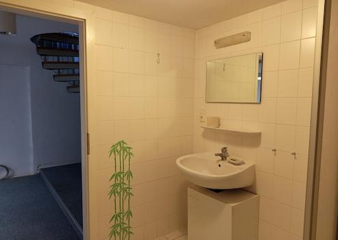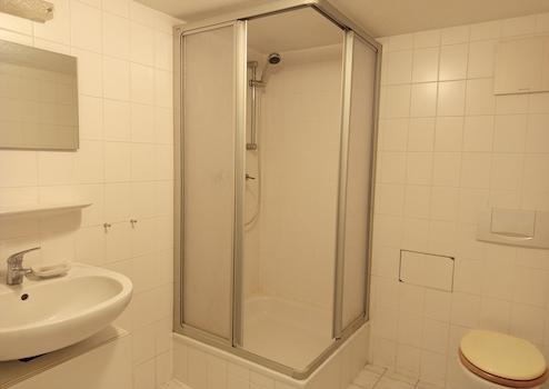 Duschbad, Teppichboden, Fliesen
