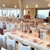 Durch flexible Trennwände kann die Fläche je nach Bedarf in mehrere Richtungen um den Restaurant- und Barbereich sowie den erhöht liegenden Emporen-Bereich mit Blick zur Seeseite erweitert oder auch bei geschlossenen Gesellschaften oder parallel stattfindenden Feierlichkeiten davon separiert werden.