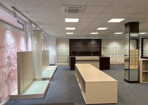 Die Verkaufsfläche ist frei von Innenwänden und öffnet sich mit einer Glasfassade zur Verkaufsstraße.
