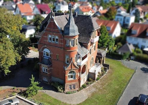 Die Villa Werren, erbaut 1898 von H. Metzendorf in Bensheim-Auerbach, vereint historischen Charme mit großzügigen Wohnflächen auf drei Ebenen.