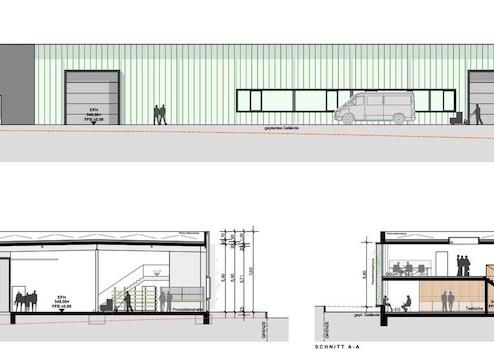 Büro 200m² und Produktionsflächen 640m² in modernem Architektur Neubau
