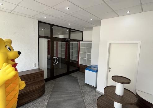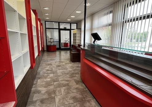 Sollten Sie als ein anderes Nutzungskonzept verfolgen, können der Ladentresen und die Verkaufstische bei Bedarf und nach Rücksprache entfernt werden. Die fest verbauten Regale müssen in der Gewerbeeinheit verbleiben.
