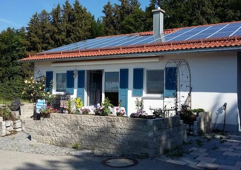 Einfamilienhaus/Bungalow mit gewerbl. Anbau und viel Land direkt am Haus zu verkaufen (Übernahme ab 15.01.2026); Alleinlage, Außenbereich, Bergblick, Baujahr 2005, 100 qm Wohnfl., 25 qm offene Galerie, 150 qm Gewerbehalle mit Belüftungssystem, Büro, WC, kleine Werkstatt, alles gefliest, Bad mit Wanne, Gäste-WC, Kunden-WC, 2 Schlafzimmer, moderne Einbauküche von 2019, großer moderner Wohn-Eßbereich mit Sichtdachstuhl, 2 Terrassen, 150 qm überdachte Freiflächen, 3500 qm eingezäunte Freifläche, 25 qm Stadel, 6000 qm Wiese am Haus nicht eingezäunt, Fußbodenheizung im ganzen Anwesen, PV-Anlage 10,5 kW, biologische Kläranlage mit Versickerbecken, Doppelgarage. Aktuell betreibe ich eine etablierte Hundepension. Bei Interesse könnte meine HP + Stammkunden übernommen werden. Durch die Lage im Außenbereich gibt es gewisse Nutzungseinschränkungen. Unter gewissen Voraussetzungen sind folgende Nutzungsmöglichkeiten denkbar: gewerbliche Tierhaltung, Imker, Tierzucht, Hundepension, Hundeerziehungscamp, Alpakazucht, u.U. Baumschule. Evtl. kann man noch weitere Flächen pachten/kaufen.