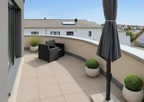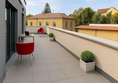 Das Dachgeschoss wurde als exklusives Penthouse konzipiert und besticht durch eine großzügige Dachterrasse sowie eine Dusche.