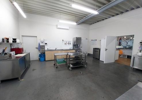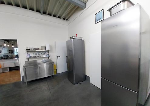 Aktuell wird das Gebäude für einen Gastronomiebetrieb und als Produktionsfläche genutzt. Bei dem Bau der Halle wurde aber schon auf eine vielfältige Nutzungsmöglichkeit geachtet. Es sind ausreichend Toiletten und Räume vorhanden. Eine andere Aufteilung ist mit wenig Aufwand umzusetzen.