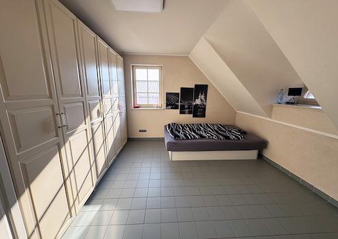Dachgeschoss: Vier Schlafzimmer, Diele, Bad (mit ebenerdiger Dusche, Wanne, Waschtisch, WC und Pissoir), Hauswirtschaftsraum