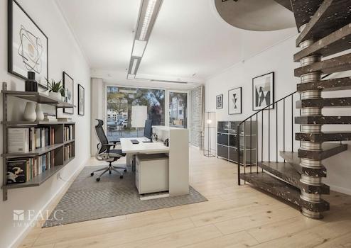 Im Erdgeschoss erwartet Sie ein großer Showroom, ein Gäste-WC, eine hochwertig ausgestattete Küche sowie ein zusätzlicher Raum, der sich ideal als Mitarbeiterbereich oder Lagerfläche eignet.