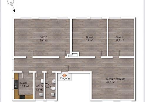 2 Räume können noch einmal geteilt werden, so dass insgesamt 6 Büroräume vorhanden sind.