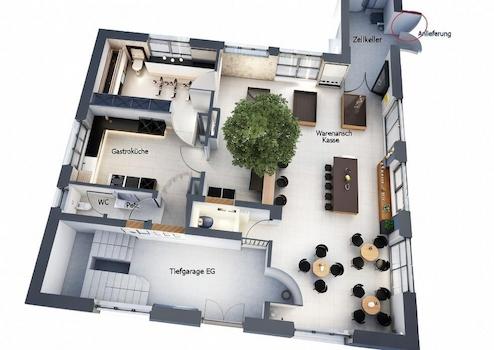- Gastronomie- oder Verkaufsbereich: Ca. 14,58 m² (erweiterbar).
