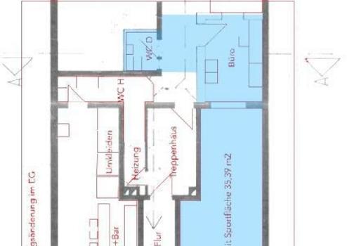 Die angebotene Gewerbefläche mit ca. 52 m² Gesamtfläche wurde zuletzt als Fitnessstudio genutzt, hat aber durch die Raumaufteilung vielfältige Nutzungsmöglichkeiten. So wäre auch ohne Weiteres eine Nutzung als Büro für z.B. Versicherungsmakler, ein Ladengeschäft oder ähnliches denkbar. Neben dem großen Raumen (derzeit Fitnessraum/Sportfläche) gibt es ein Büro und eine Toilette. Das Büro kann ohne großen Aufwand vom vorderen Bereich getrennt werden. Das Lager im hinteren Bereich kann auf Wunsch separat angemietet werden.