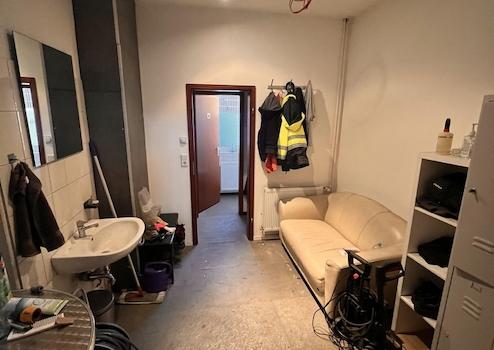Im Erdgeschoss befinden sich neben einem Büro (35,83 m²) ein Sozialraum (11,40 m²) sowie ein WC. Im Obergeschoss stehen ein weiteres großzügiges Büro (71,14 m²) sowie Flächen für Verwaltung und Organisation zur Verfügung.