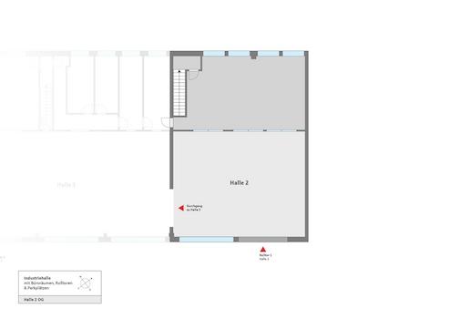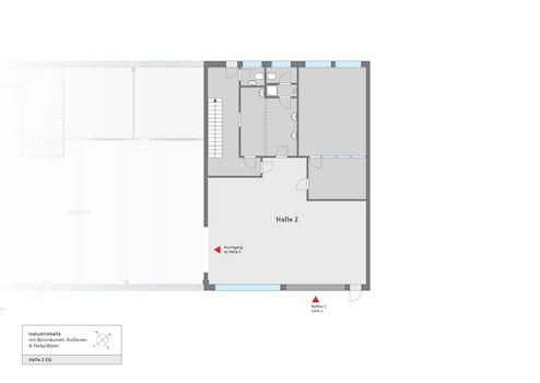 Beide Einheiten sind über Durchgänge in der Hallenfläche zur Befahrung mit Gabelstapler und im Bereich der Bürofläche im 1. OG verbunden und ergeben zusammen eine Gesamtfläche von 887,32 m².
