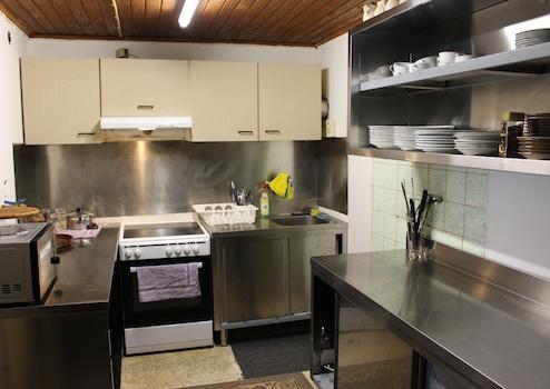 Im Erdgeschoss befindet sich ein vollausgestatteter Frühstücksraum/Aufenthaltsraum sowie eine kleine vollausgestattete Edelstahl-Gastroküche. Eine kleine Zapfanlage befindet sich ebenfalls im Frühstücksraum.