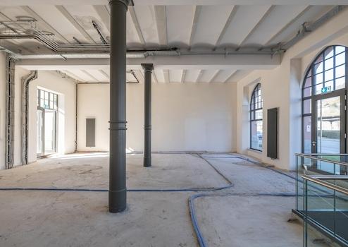 Die Gewerbeflächen werden im erweiterten Rohbau (inkl. Fassade, Aussenfenster, Aussentüren, Maßnahmen Effizienzhaus Denkmal, Brandschutzmaßnahmen) übergeben, mit einem definierten Übergabepunkt der Medien (Heizung, Lüftung, Sanitär, Elektro) in der Ladeneinheit.