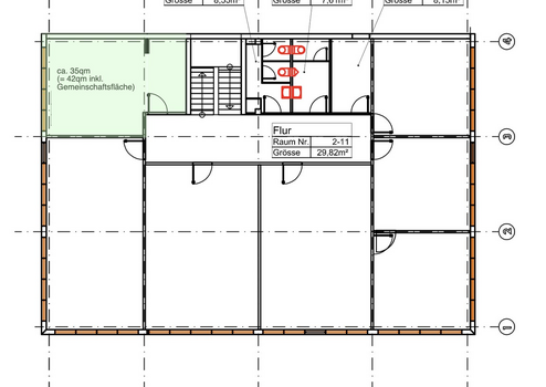 Die Allgemeinflächen (Flure, Toiletten, Küche) wurden bereits auf die Mietflächen umgelegt.