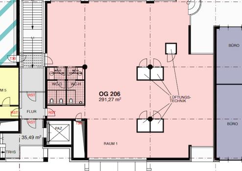 - flexible und effiziente Raumaufteilung vom Einzelbüro bis hin zum Großraum-Loftbüro