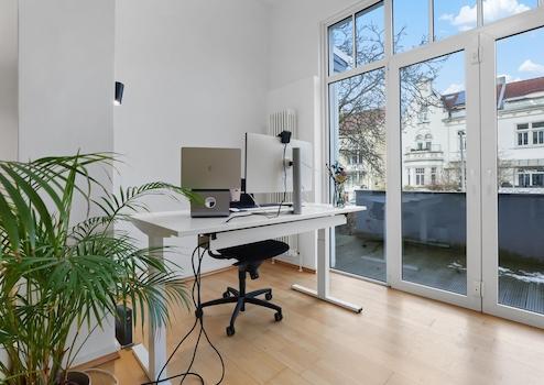 - Terrasse mit großer Fensterfront für eine angenehme Arbeitsatmosphäre