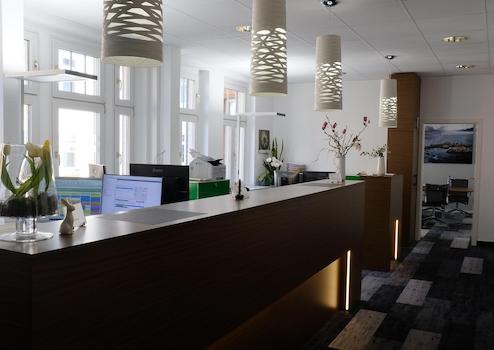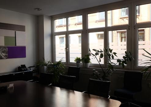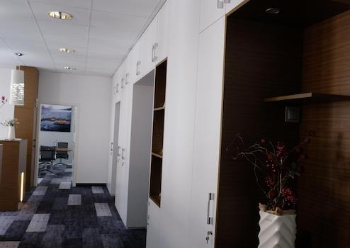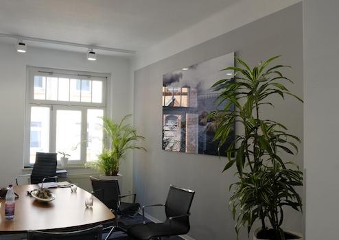 Im 1 OG gibt es einen großen Besprechungsraum, einen großzügigen Eingangsbereich mit Empfangstresen und Arbeitsplätzen sowie 3 weitere Büroräume. Hinzu kommt ein Wartebereich, eine Teeküche und Aufenthaltsmöglichkeit sowie insgesamt 3 Toiletten.