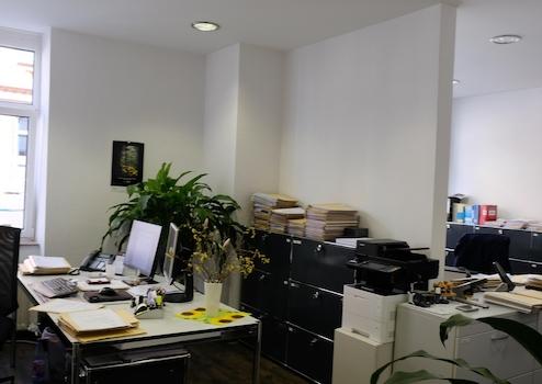 Im EG (111 QM) war zunächst eine kieferorthopädische Praxis untergebracht, seit 10 Jahren werden diese Räume ebenfalls von dem Notariat genutzt. Die Etagen sind getrennt vermietbar. Beide Ebenen sind mit eigenen Teeküchen und Toiletten ausgestattet.
