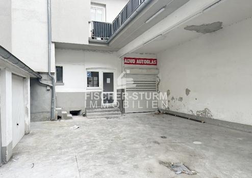 Im Hinterhof gibt es einen Eingang zum Büro (ca. 12 m²) sowie eine mit einem Sektionaltor versehene Einfahrt zur Halle.